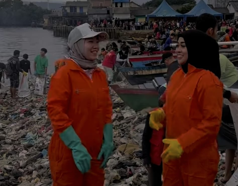 Bandar Lampung – Anggota DPRD Provinsi Lampung Lesty Putri Utami bersama dengan pemerintah, masyarakat, mahasiswa, TNI, Polri ikut membersihkan Pantai Sukaraja, Kecamatan Bumi Waras, Kota Bandarlampung dari tumpukan sampah.