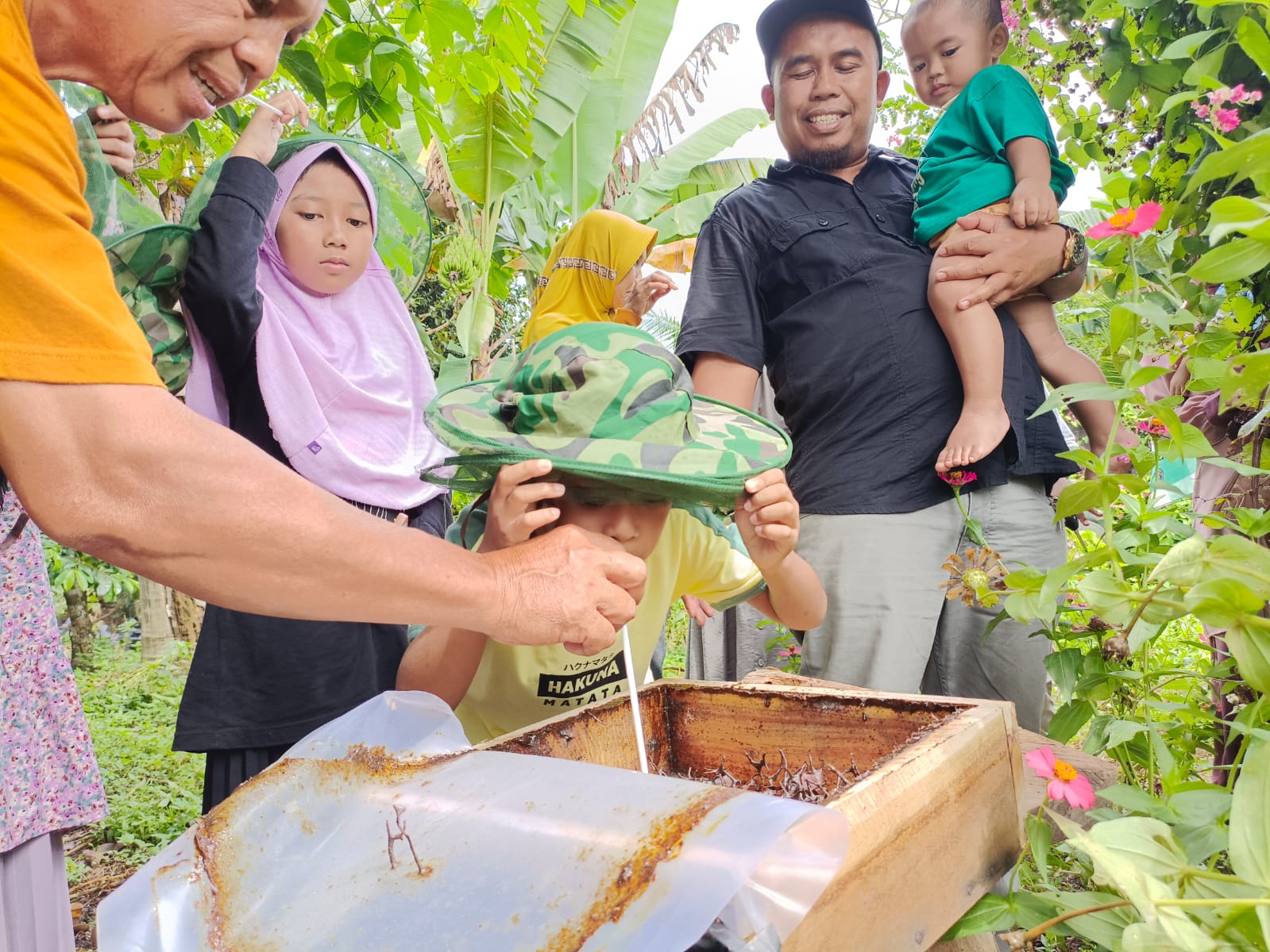 GenPI Lampung- Tour Keliling Metro selalu memberikan pengalaman dan cerita baru yang unik. Salah satunya saat menyambangi Kampung Lebah Yosomulyo, kalian akan mendapatkan sensasi pengalaman menyedot madu langsung dari sarangnya.