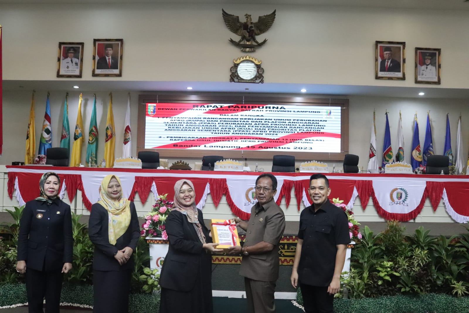 Bandar Lampung – Wakil Gubernur Lampung, Chusnunia, menghadiri rapat paripurna DPRD Provinsi Lampung yang dipimpin oleh Ketua DPRD, Mingrum Gumay dengan agenda penyampaian rancangan Kebijakan Umum Perubahan APBD (KUPA) Tahun 2023 dan penyampaian Rancangan Kebijakan Umum APBD (KUA) serta Prioritas Plafon Anggaran Sementara (PPAS) untuk APBD Tahun 2024, yang berlangsung di Ruang Sidang DPRD pada Selasa (15/8/2023).